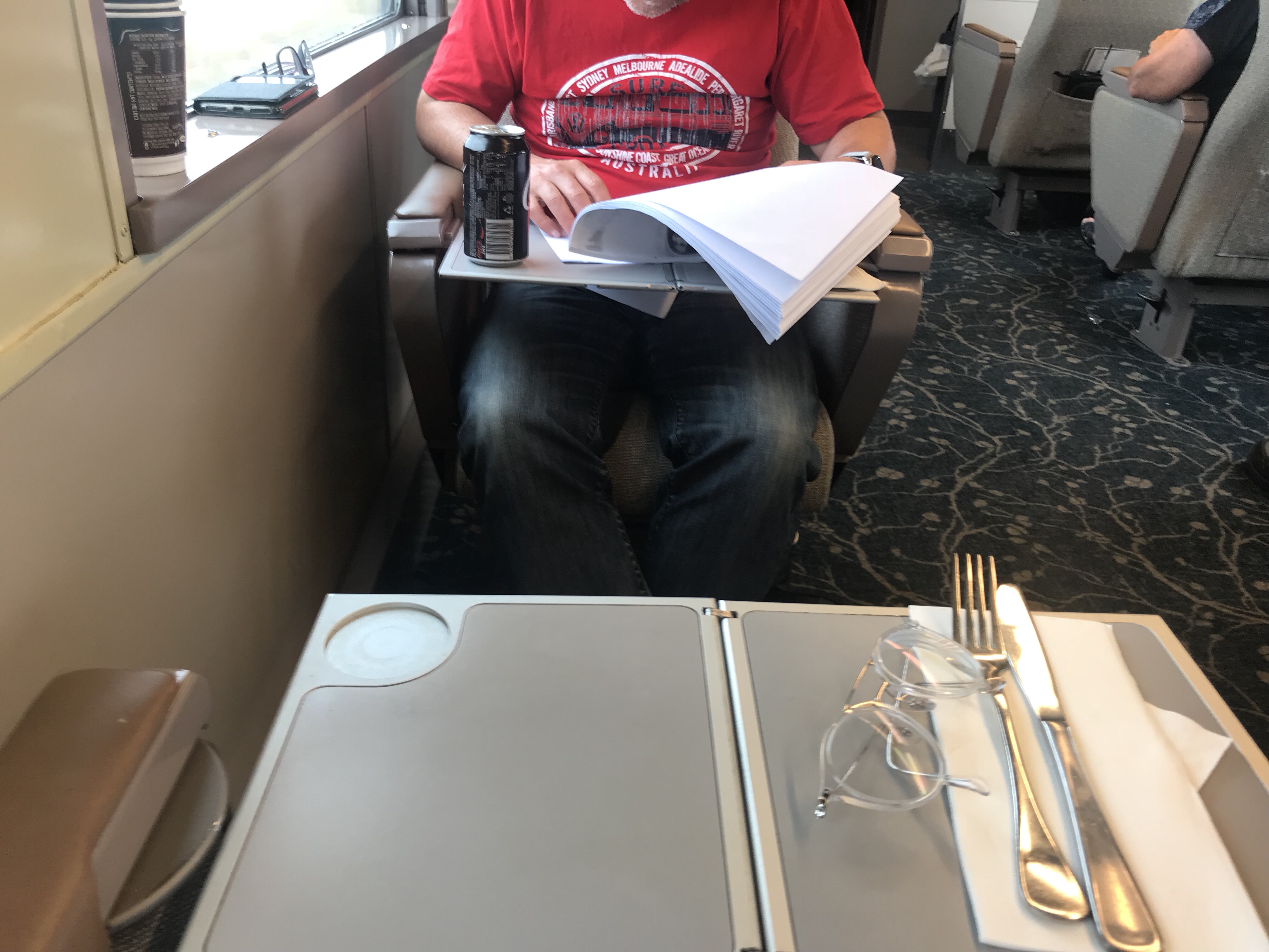We’ve passed by Geelong, Aarat and lunch is on its way. We are 4.5 hours into the trip. Ted works whilst I blog.