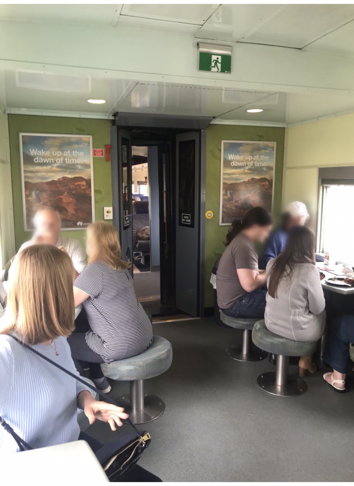 There’s more of a buzz in the dining carriage. I don’t feel like I’m in the library anymore, now perhaps an ambience of Coles cafeteria.