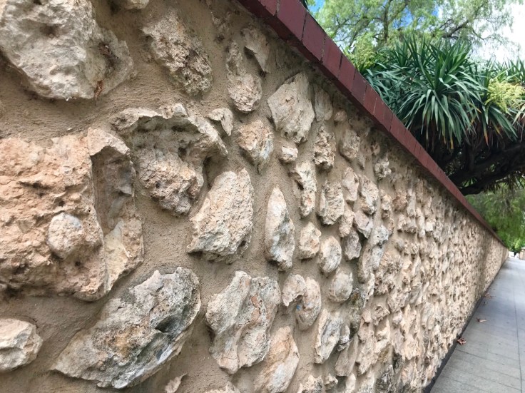 The stonework of a Parliament House is interesting as is this stone wall we walked past below…..