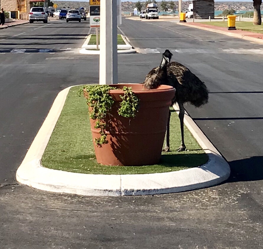 We stopped to have a look Eagle 🦅 Bluff. No eagles to be seen but a great view. Shark Bay was a bit of a non event for me. Not much of a vibe happening there and not a lot to see. I did enjoy garlic Shark Bay prawns for lunch at the Waterfront Hotel and Ted saw an Emu eating out of flower-pot in the main street.