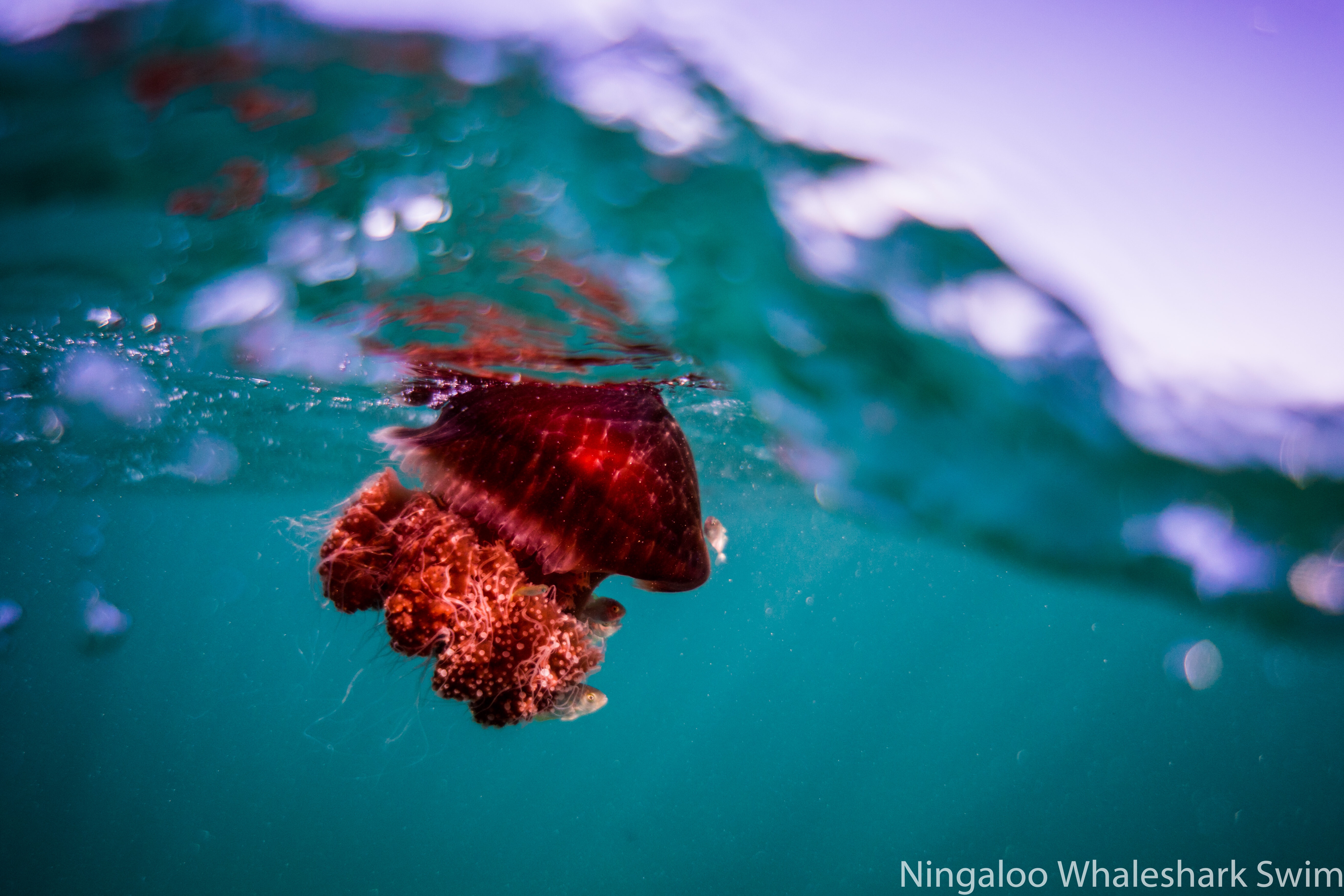 The water on the Reef was cool. The red Jelly fish, beautiful