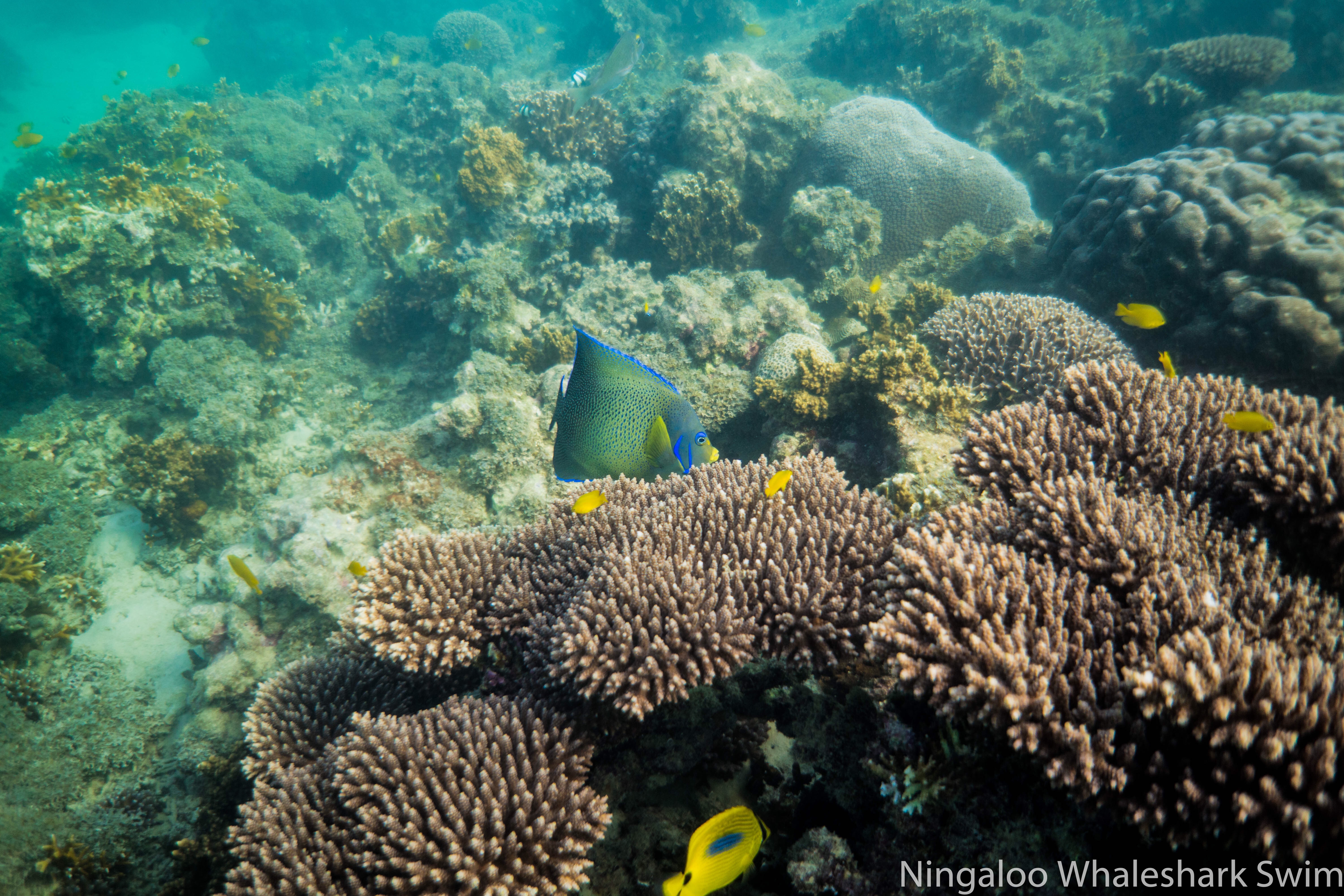 Day 7: swimming with a Manta Ray and snorkeling on the Ningaloo Reef Coral Bay.