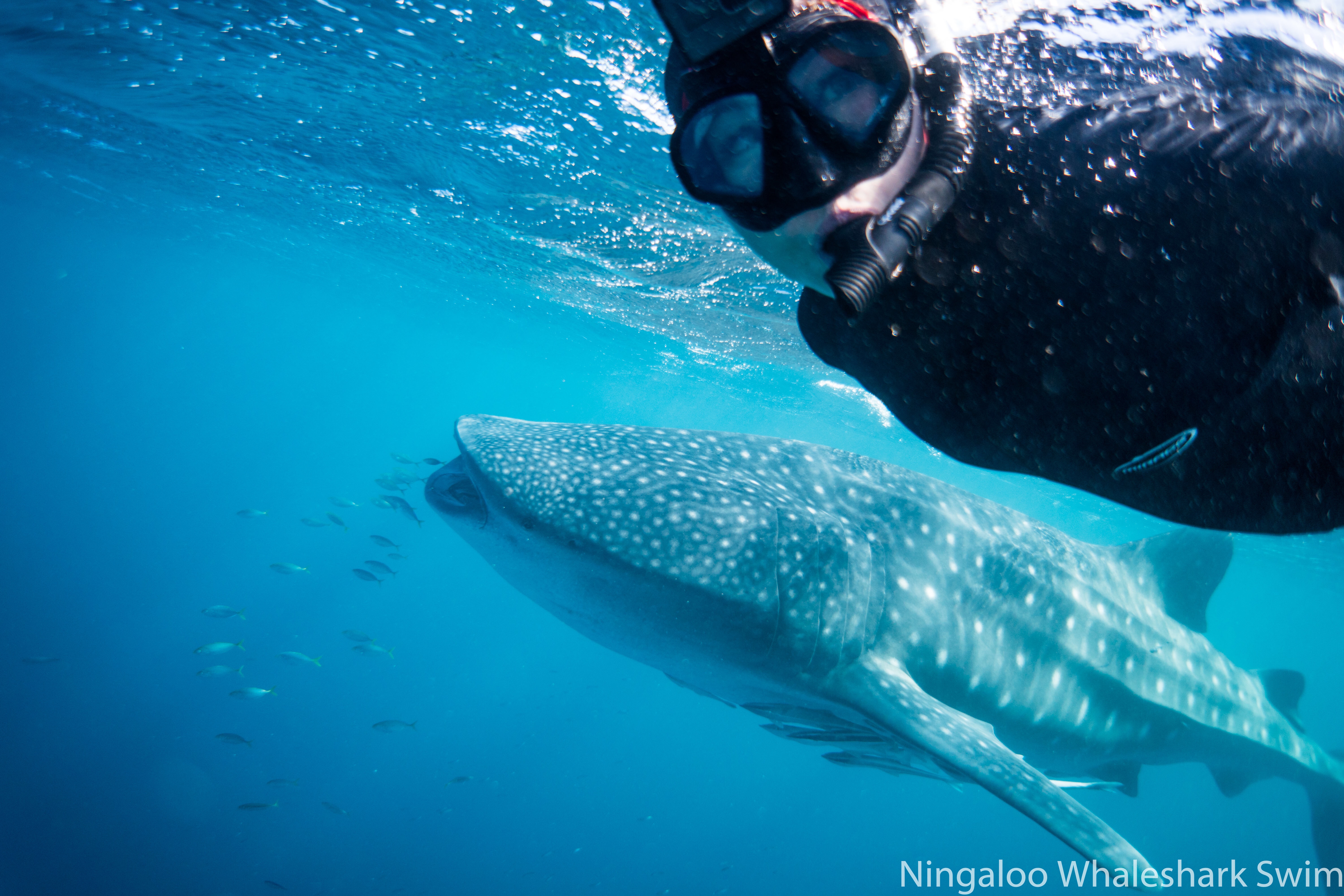 Exmouth has a population of 2000 and in the whale shark season up to 6,000. We did our whale shark dive with the Ningaloo Whale Shark Swim company. There’s about 10 companies competing. Our company takes out 20 people a day at about $400AU a person.