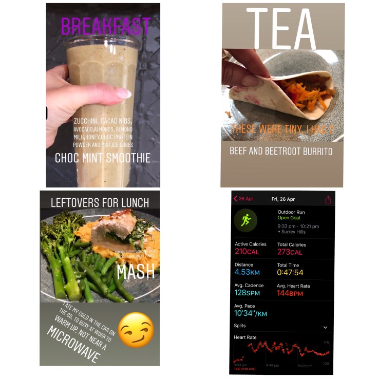 I really didn’t want to eat salsa for breakfast this morning. It would have felt such a treat to have my favourite berry smoothie. I didn’t enjoy the salsa toast. Lunch was a pumpkin salad and that I didn’t enjoy. Tea was a vegetarian Nasi Goreng and I didn’t enjoy that. Today’s food I suffered through to be honest.
