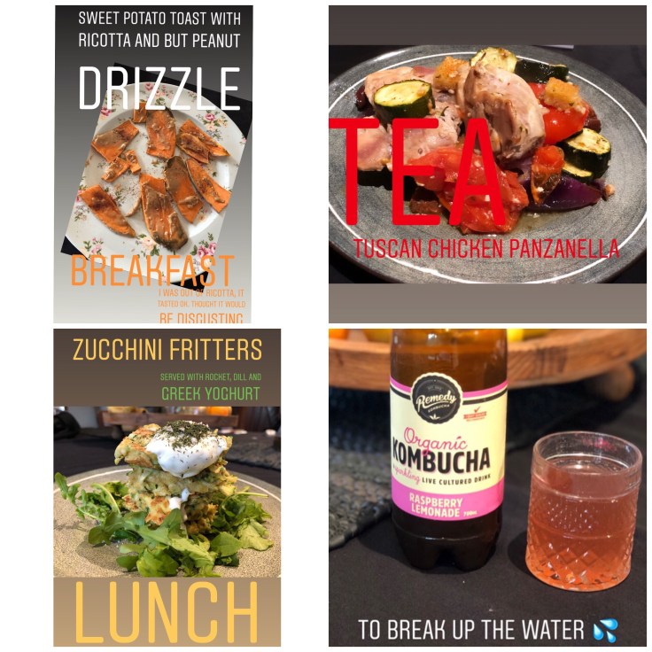 Another good day. Snacked on some almonds and a little fresh pineapple from a platter in a late meeting at work. Overall food was good. I’m making a huge effort with water consumption. I went for a walk/jog with Ted. I jogged a stint of 500 metres , walked, then jogged about 200 metres, then walked. This is massive for me. I have not attempted jogging in forever! Well a very long time but I have now. It may be nothing to some but every achievement for me is a positive and progress.
