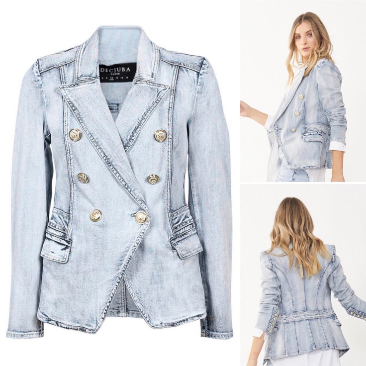 A cheaper alternative is the Ellen Denim Blazer $149.94 AUD available at Decjuba