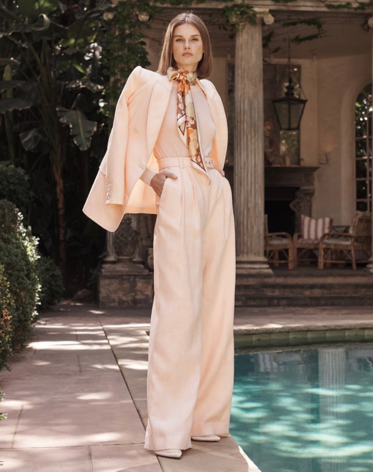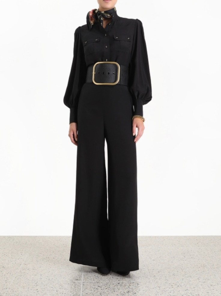 An element I like is high waisted pants but not a classic flare but a wide flare pant, purely because it fits my height and body shape better. Tops were often fitted with a fitted short sleeve. This would give a 70’s inspired look as would the high waisted pant with a nice shirt. The hoop earrings and Zimmermann Coat that has a relaxed fit, loose sleeves and fringed edging helps pull the outfit together with a nice finish. It’s 70’s influences with a modern twist. Below is an example of how I have put this style together.