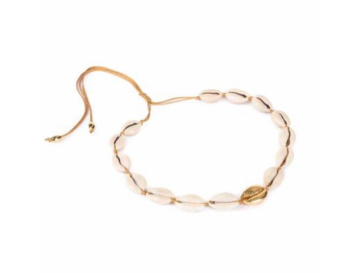 Moving onto necklaces this Large Puka Shell Necklace Natural with Gold by Tohum $
