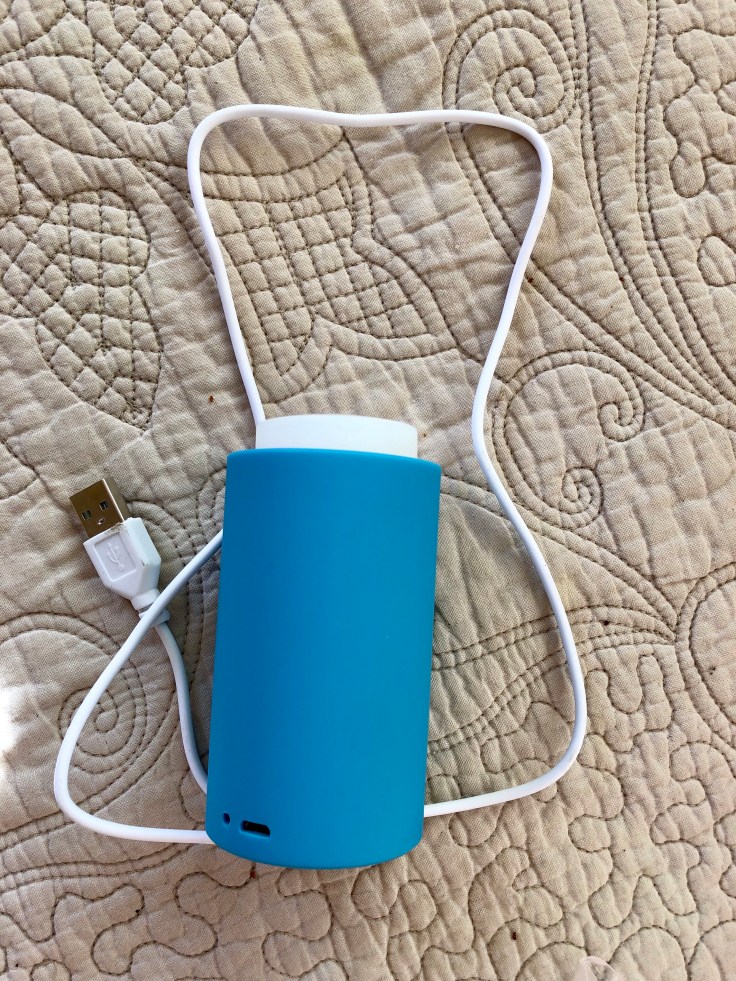 I have bought some things I think may be helpful. I’m expecting the weather to be cooler for my trip so am planning on taking some warmer clothes which can not necessarily be heavy but bulky to pack. I came across this portable vacuum device. it’s small and easy to pack and has an electric charged battery. The charger cord has a USB end which fits in to the wall plug that I use for my apple Iphone charger.