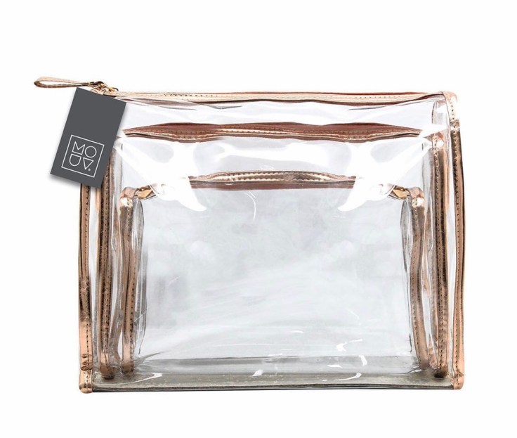 When travelling I like clear toilette bags so you can easily visualise your products. When at home they are on a shelf and easy to see and grab. It can be annoying when away to be constantly fossicking for that little container you want when you can’t see where it is.