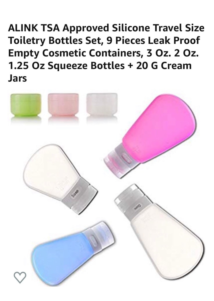 Containers for decantering beauty products into such as shampoo and face creams to avoid the weight and space occupation in your luggage.
