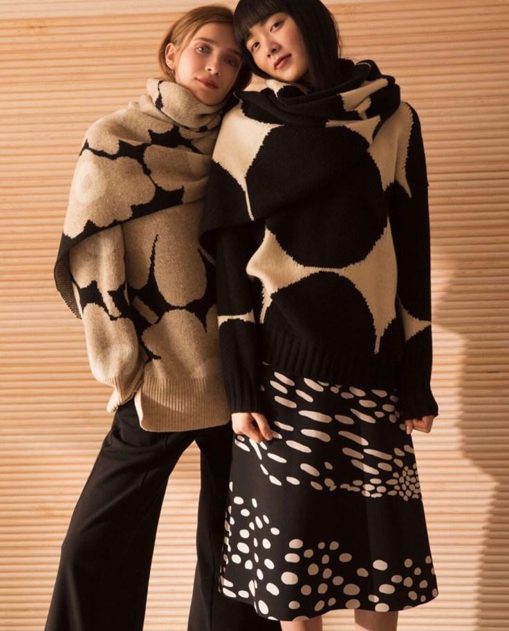 Jumper on the left is the Onnekes Unikko pullover $395AUD and matching scarf (not yet released) from Marimekko