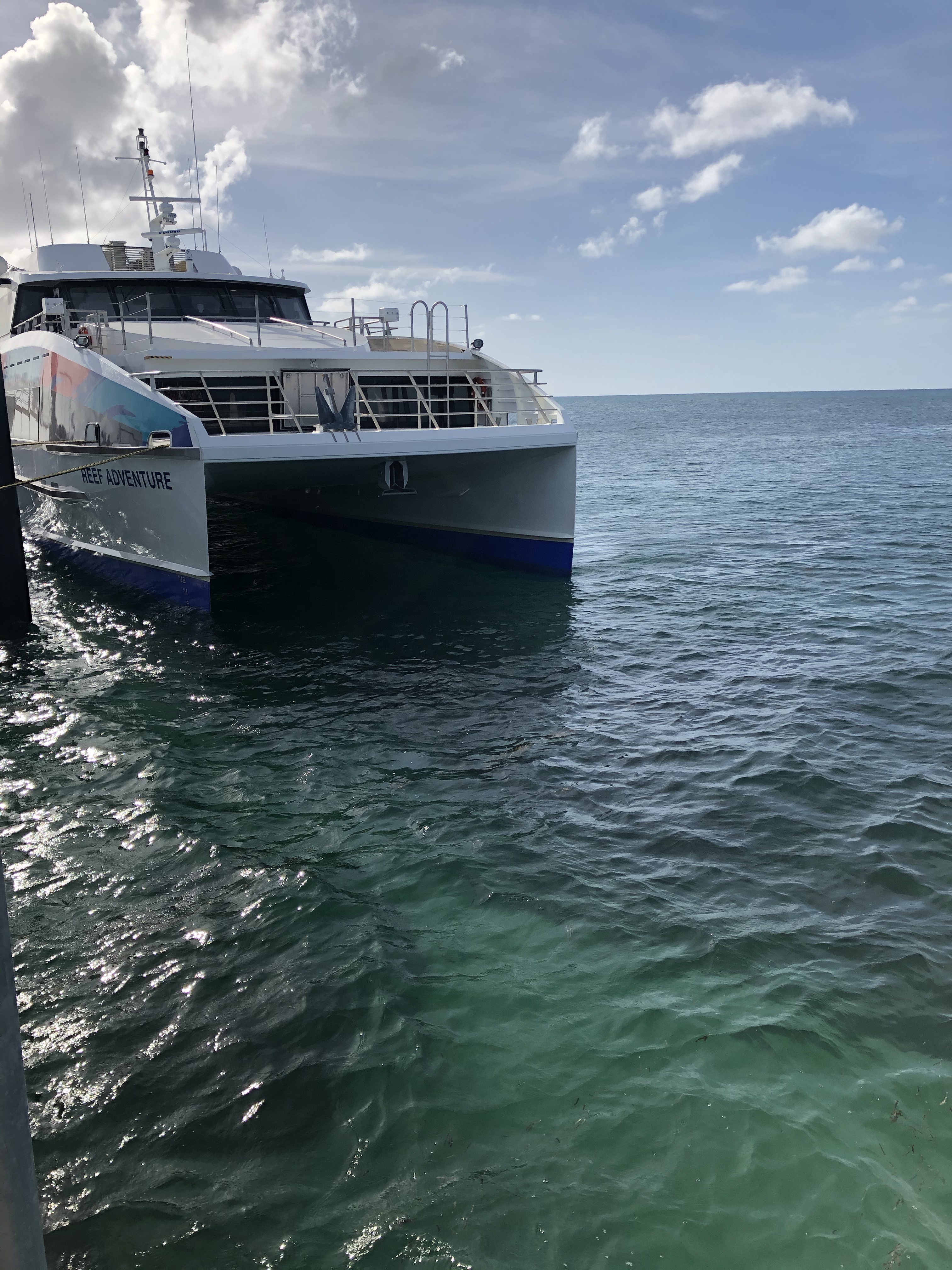 Ted and I caught the boat at 1030am. Cost was $98AUD for a return trip. There is an 0830am departure or 1030am. The return is 2:30pm or 4.30 pm. We met a lovely guy on the boat, a New Zealander living in Cairns.