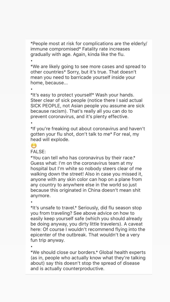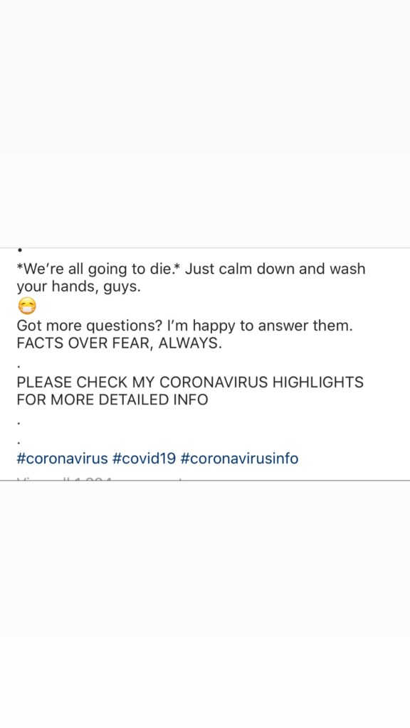 This is a good post from Instagram which explains the COVID -19 virus and current facts.